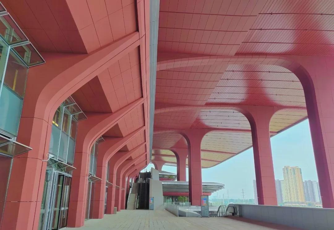 项目场馆设计由英国扎哈建筑事务所担纲方案设计,整体风貌巧妙融入了西安城市独有的“周秦圣殿之庄严、汉唐雄风之豪迈”元素,以方正恢弘的造型、简洁飘逸的悬挑屋面、陶土色彩的运用,充分彰显了西安历史文化底蕴和传统建筑符号。