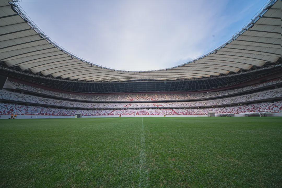 内场采用经典马鞍形看台设计,视觉质量(C值)均超90,依托5G技术,360度环绕屏幕与FIFA标准音响构成国际顶级声光电交响,建起了沉浸式虚拟体验。配合瞬时启闭的防眩光LED系统,无论现场观赛或高清转播皆能呈现完美画质。